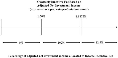 | ● | 100% of the Company’s “adjusted net investment income” with respect to that portion of such “adjusted net investment income,” if any, that exceeds the Hurdle Amount but is less than or equal to an amount (the “Catch-Up Amount”) determined on a quarterly basis by multiplying 1.6875% by the Company’s total net asset value for the immediately preceding calendar quarter. The Catch-Up Amount is intended to provide the Adviser with an incentive fee of 12.5% on all of the Company’s “adjusted net investment income” when the Company’s “adjusted net investment income” reaches the Catch-Up Amount in any calendar quarter; and |